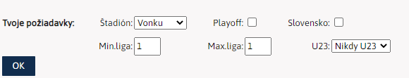 - Min. liga – Zadaj číslo najnižšej ligy, z ktorej môže byť tvoj súper. Ak zadáš 3, tvoj súper bude z 1. až 3. ligy. Ak necháš 0, liga nebude obmedzená.